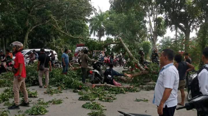 Dahan pohon patah timpa pengendara sepeda motor saat melintas di Jl Proklamasi, Kelurahan Kwala Bingai, Kecamatan Stabat, Langkat, Rabu 27 Agustus 2025 sore. Insiden ini memicu kegeraman warga dan desakan agar Kadis Lingkungan Hidup (LH), M Harmain SSTP, dicopot.