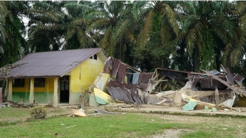 Banjir melanda wilayah Sekoci, sejak 26 Desember 2025 itu menyebabkan gedung sekolah mengalami kerusakan.