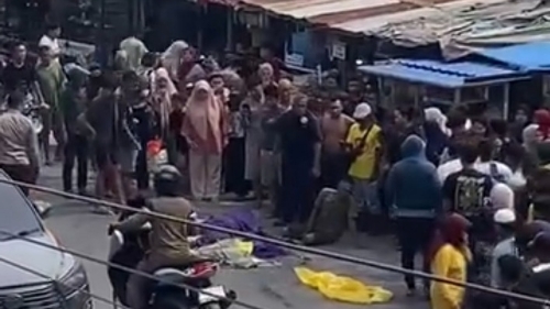 ‎Warga yang melihat kejadian langsung menutup tubuh korban yang berserakan menggunakan kain dan plastik.