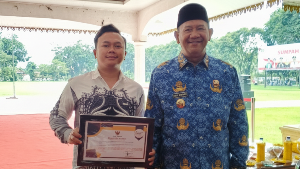 Bupati Langkat, H Syah Afandin, SH menyerahkan penghargaan tersebut pada upacara peringatan Hari Sumpah Pemuda ke-97 tahun, di Alun-alun Tengku Amir Hamzah, Stabat, Selasa 28 Oktober 2025.