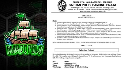 Dalam surat tersebut, Kasat Pol PP, Deli Serdang Marjuki menugaskan pembongkaran bangunan (Diskotik Marcopolo) yang tidak memiliki PBG di Jalan Sei Petani Dusun VII Desa Namorube Julu Kecamatan Kutalimbaru.